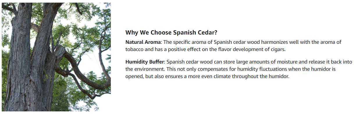 • Handmade, Completely lined with the finest genuine spanish cedar, with one removable divider inside.